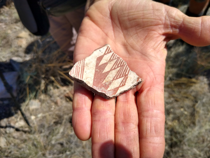 On a very warm and sunny Sunday, August 4, 2024, twenty one members of the Grant County Archaeological Society (GCAS), coming from as far away as El Paso, Texas, gathered together to explore the Archaeological Conservancy’s Treasure Hill site located in our very own Arenas Valley. Archaeologists consider this Late Pithouse-to-Mimbres Classic site (roughly 550 CE – 1130 CE), comprising a total of 100 rooms in 6 room blocks plus an additional 24 outlying sites, to have been the largest Mimbres community in the middle Rio de Arenas/Whiskey Creek watershed. Unfortunately Treasure Hill, like so many other Mimbres sites, has suffered heavy looting from the late 19th Century to the present. A major road and residential development surround it and it has accumulated windblown trash as well as garbage carried in by unauthorized visitors. Consequently…