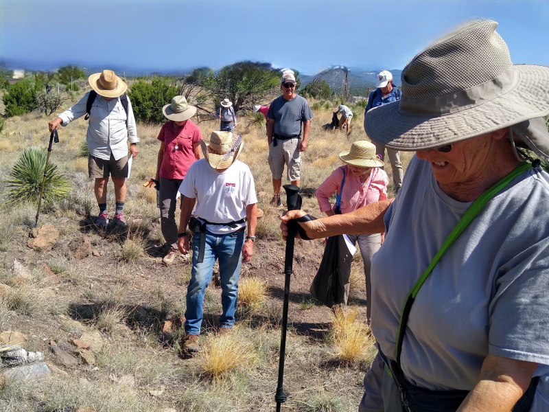 …the GCAS volunteered to combine their scheduled field trip to the site with a trash pick-up. Our group spent 1-1/2 hours exploring the prehistoric structures’ remains and learning the more recent history of site ownership. Nevertheless everyone was all business the whole time and removed accumulated garbage as they walked from room block to room block.